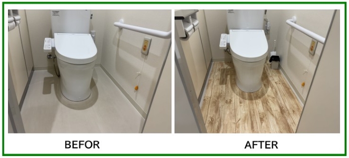 開院して1年経過,清掃がんばってもトイレ周りの汚れが目立ち始めたので,休日を利用して家内と二人でDIYしてみました.素人ですが,まぁまぁの出来栄えです.