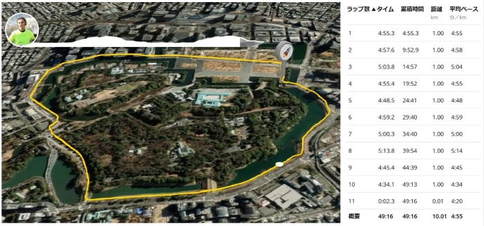連休中に東京に用事があったので,半年ぶりに皇居で走ってきました.今回は当日エントリー可能なピーエスエス主催の皇居健康ランニングに参加,20kmでエントリーしたのですが,熊騒動で2か月ぐらいトレッドミルでしか走っていなかった結果,途中で脚に違和感でたので10kmでリタイヤしてしまいました (-_-;) .それでも 4:55㌔ だったのでまぁまぁかなぁ.